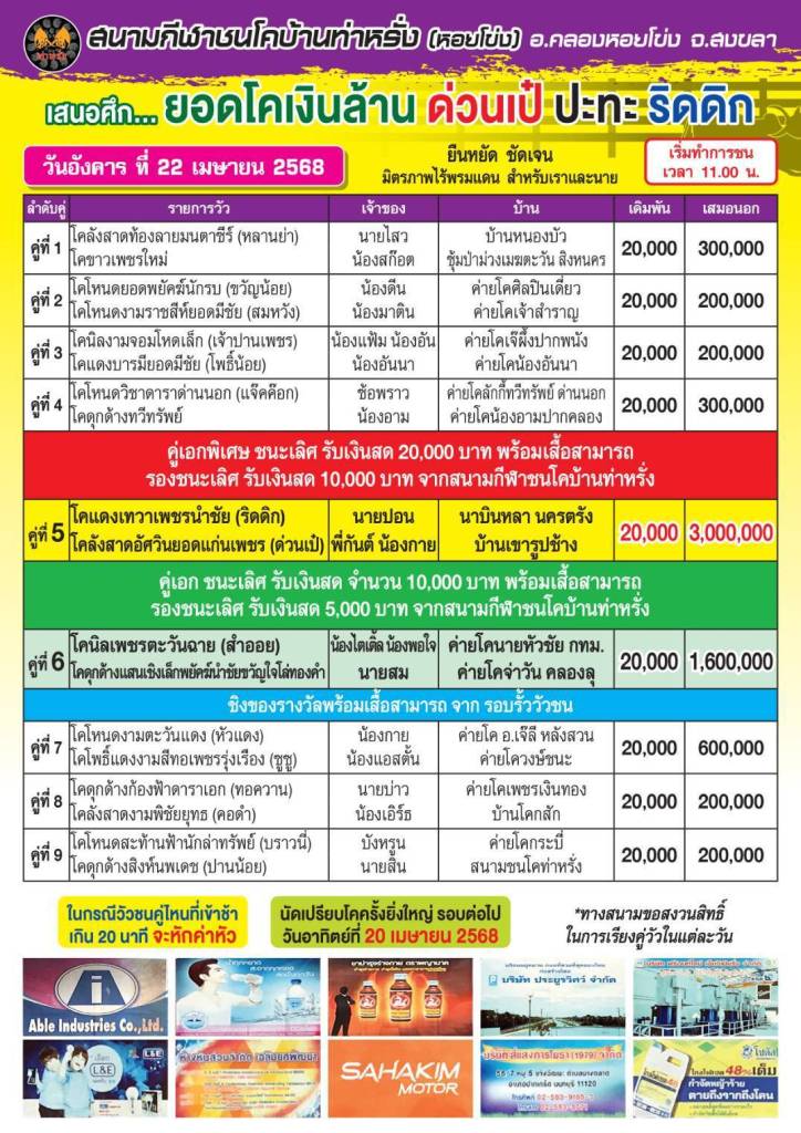 ชนสนามท่าหรั่ง 22 เมษายน 2568