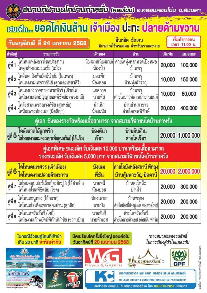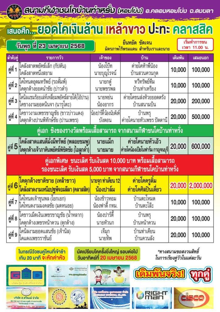 ชนสนามท่าหรั่ง 23 เมษายน 2568